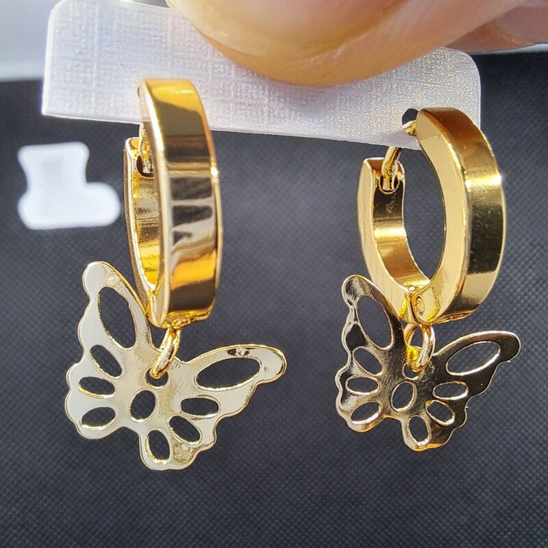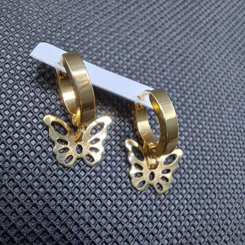 Nemesacél arany színű fülbevaló pillangó függővel