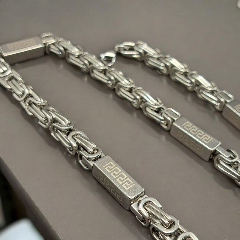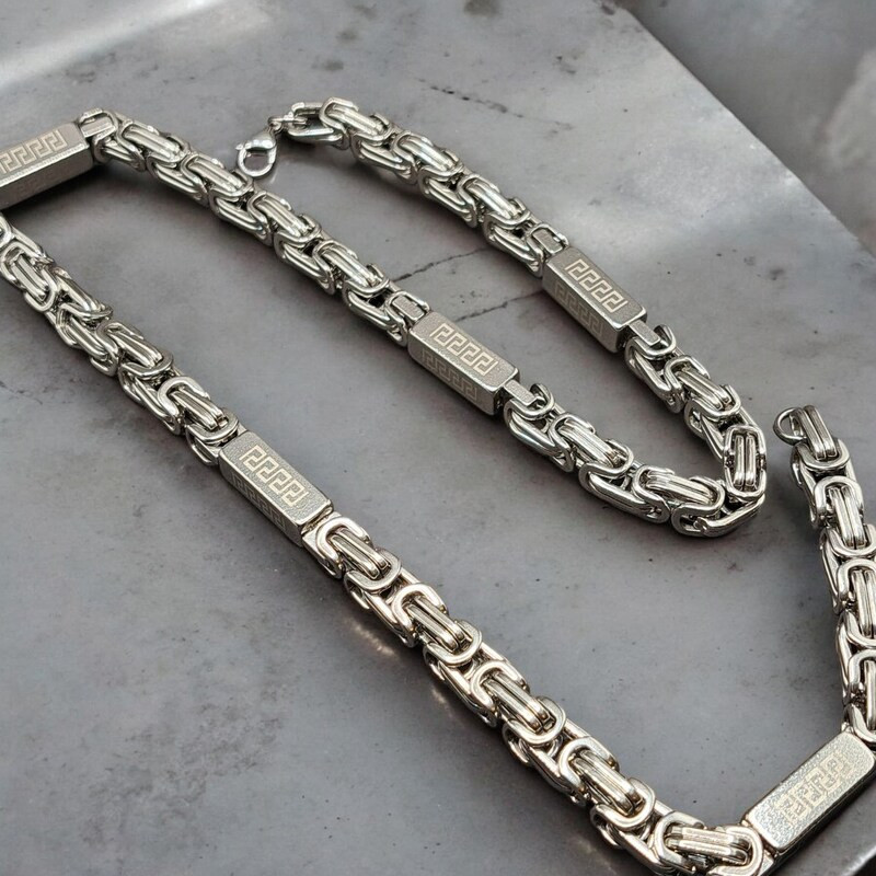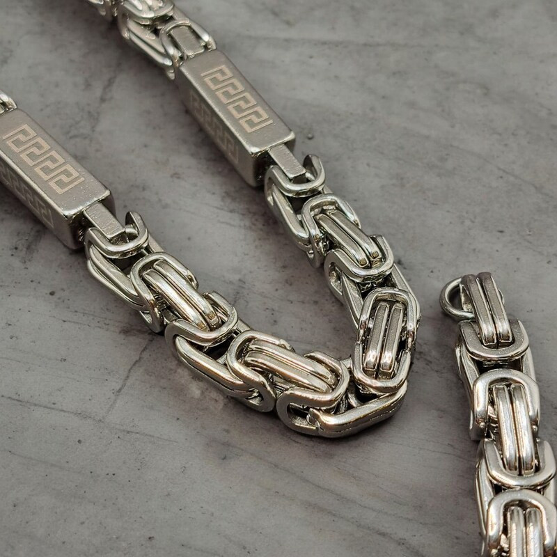 Nemesacél nyaklánc görög mintás hasábokkal